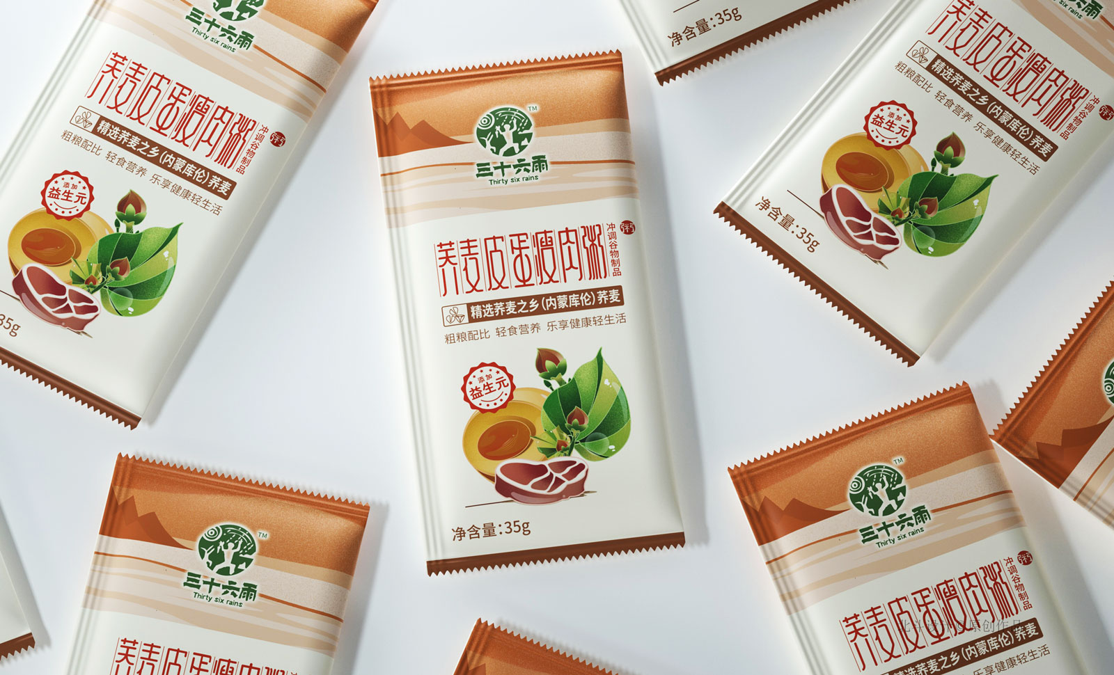 北斗設(shè)計(jì)致力于將創(chuàng)意演變成品牌戰(zhàn)略資產(chǎn),為客戶產(chǎn)品塑造更具市場(chǎng)競(jìng)爭(zhēng)力的戰(zhàn)略包裝設(shè)計(jì),讓客戶所花的每一份設(shè)計(jì)費(fèi)能夠形成品牌資產(chǎn)的增值或保值積累。此次幫助三十六雨延展了蕎麥皮蛋瘦肉粥,主打沖調(diào)型代餐飲品類別。三十六雨的產(chǎn)品戰(zhàn)略是圍繞蕎麥為主體開發(fā)關(guān)聯(lián)性快銷食品,致力為客戶解決簡(jiǎn)單代餐的營(yíng)養(yǎng)問題。