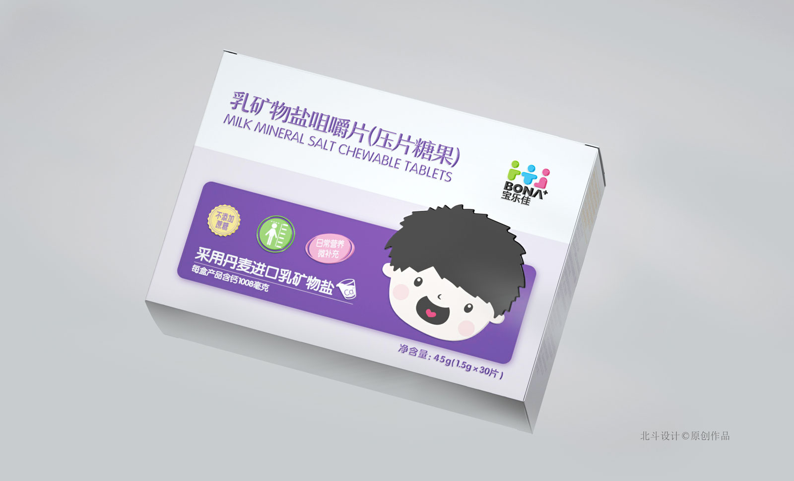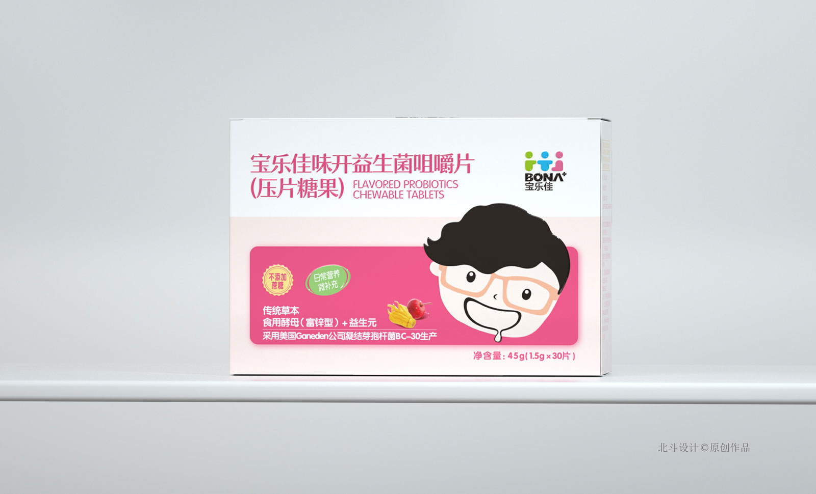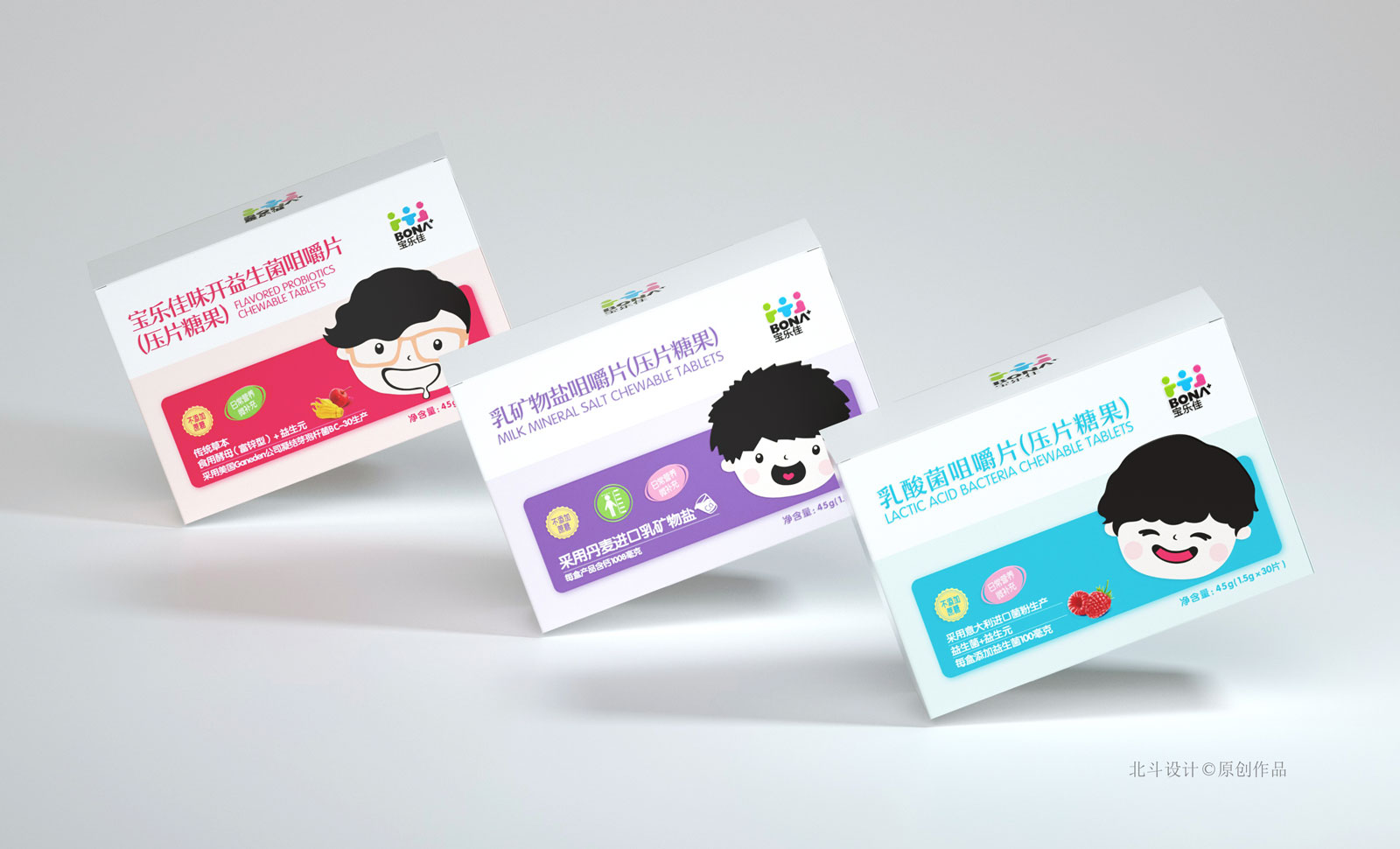 寶樂佳這款壓片糖果系列包裝設(shè)計(jì),在同類產(chǎn)品中定位是中高端,所以在產(chǎn)品包裝的設(shè)計(jì)工藝,和設(shè)計(jì)美學(xué)上都是比較高的要求。北斗設(shè)計(jì)采用的創(chuàng)意符號(hào)是兒童卡通表情符號(hào),通過不同的表情符號(hào)表現(xiàn)不同類型的糖果,通過卡通的趣味心態(tài)帶給用戶更有趣的體驗(yàn)感;色彩表現(xiàn)采用的是粉色系,這種色系更能受到兒童用戶的青睞。