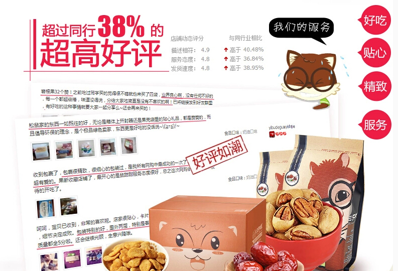 下面我們來說說包裝的重要性:有一句話永遠(yuǎn)不過時(shí),好的食品包裝設(shè)計(jì)頂過千千萬萬的銷售員,尤其是互聯(lián)網(wǎng)時(shí)代,包裝根本不需要銷售人的推銷,直接就面對了消費(fèi)者,三只松鼠為什么能夠成功,從視覺體驗(yàn)上說:因?yàn)樗⒅亓爽F(xiàn)代產(chǎn)品的視覺體驗(yàn)設(shè)計(jì),把用戶體驗(yàn)做到了極致,所以它成功了