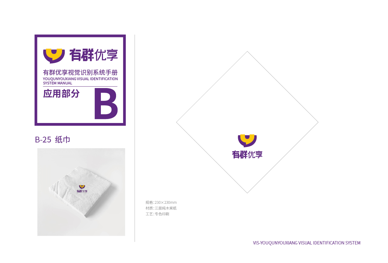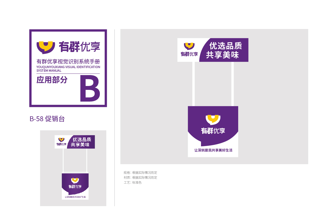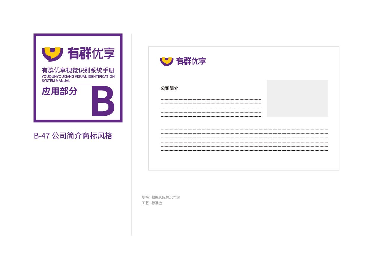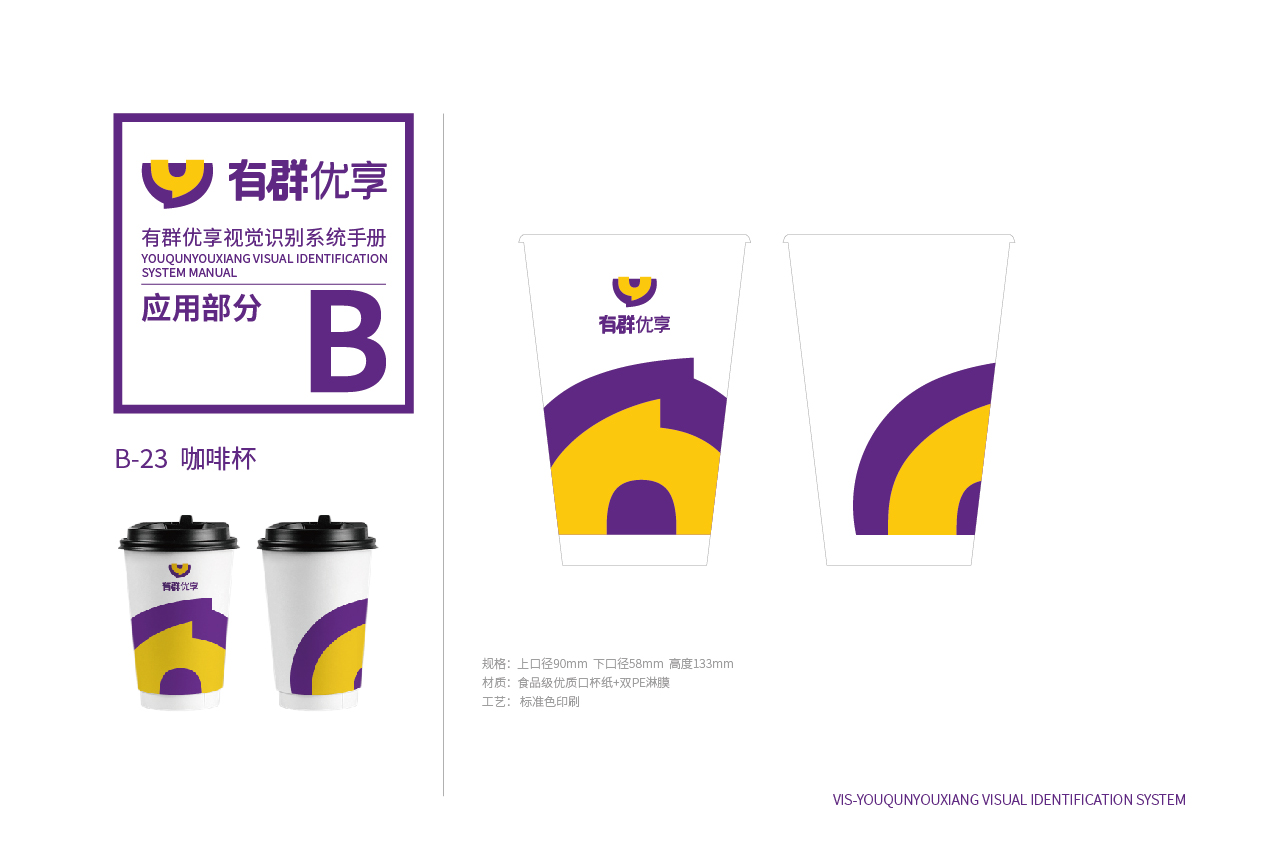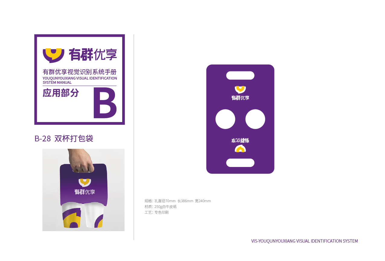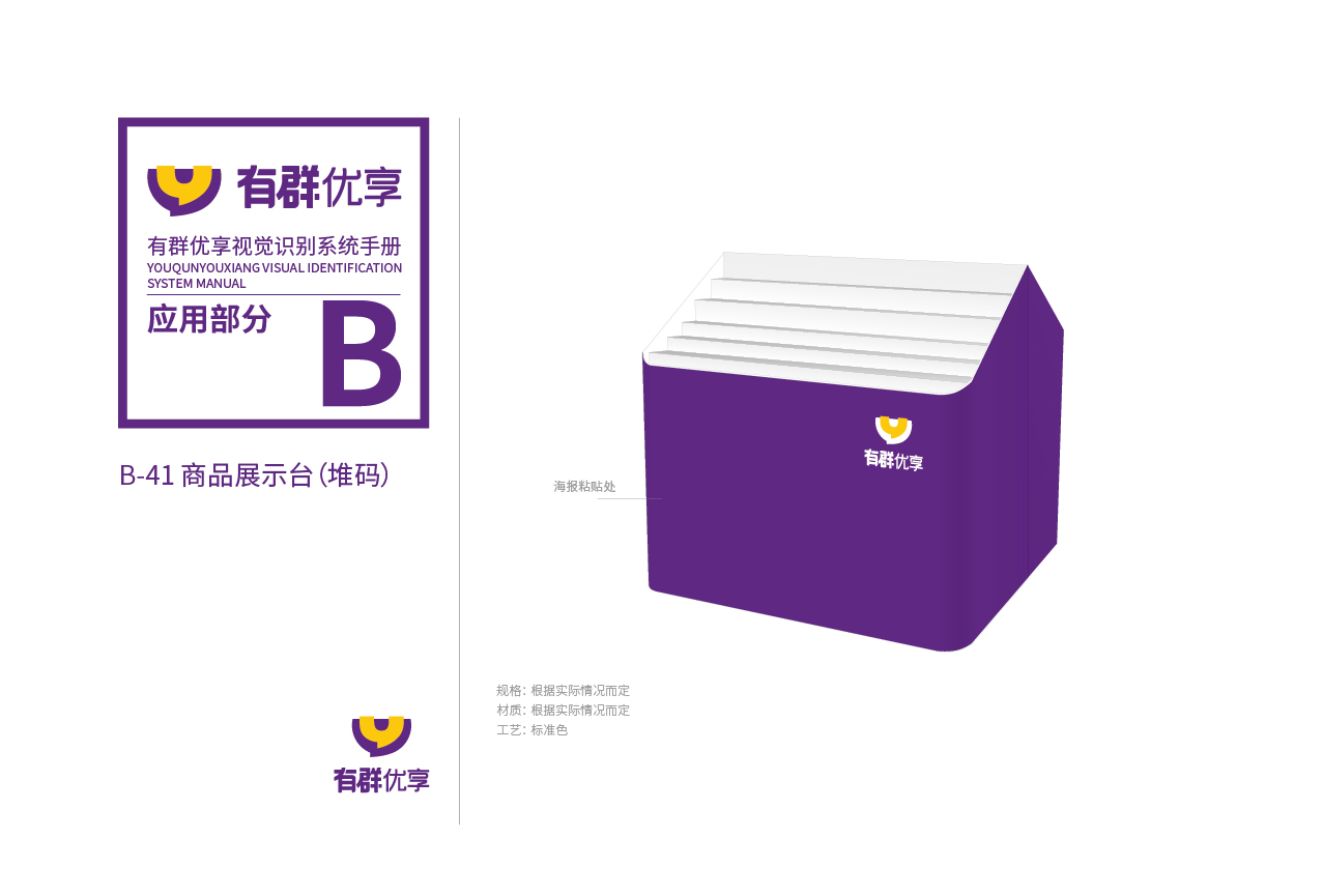 有群優(yōu)享是針對城市居民與農(nóng)民流通農(nóng)產(chǎn)品所建立傳播的品牌名稱。廣告語:讓城市居民與農(nóng)民共享美好生活。而有群創(chuàng)客及有群扶貧是針對企業(yè)內(nèi)部的傳播以及響應(yīng)政府的扶持政策。所以整個品牌的系統(tǒng)聚焦是有群優(yōu)享的視覺傳播。