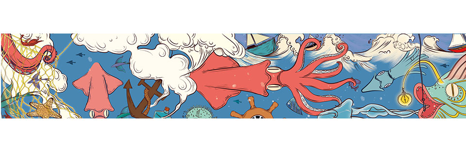視覺插畫圍繞魷魚展開一些列的創(chuàng)作,色彩定位也與市場(chǎng)有極大的差異化,希望通過(guò)消費(fèi)者的第一視覺能夠快速記住我們快捷體驗(yàn)餐廳的形象。