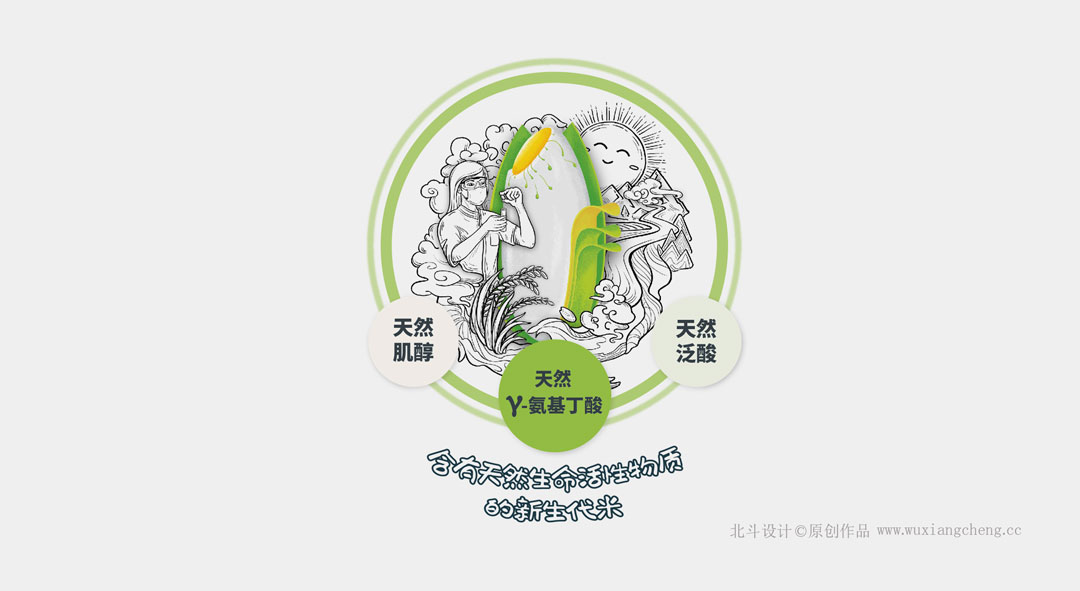 胚萌專利就像一粒受精卵,能"無中生有"發(fā)育出如此精準而復雜的人體系統(tǒng)一樣;—粒種子也一樣能夠創(chuàng)造神奇。胚萌米就是利用生命之神奇的禮物,用國際發(fā)明專利(PCT/CN2017/114595)技術,經鮮活種子(不是無生命的死谷米)萌動,激活全谷粒各種生命活性物質后,再生產加工成活性物質大米。那么我們在創(chuàng)作的過程能不能通過畫面的創(chuàng)意來表達出我們所要傳達的直觀理解。