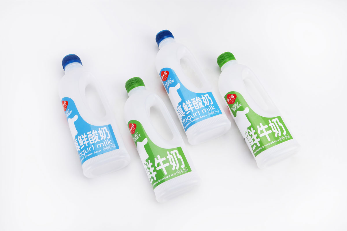 Divided into: family pack milk, pasteurized milk and pasteurized yogurt two product. Yogurt is blue, and pasteurized milk with green, green to express natural pure!