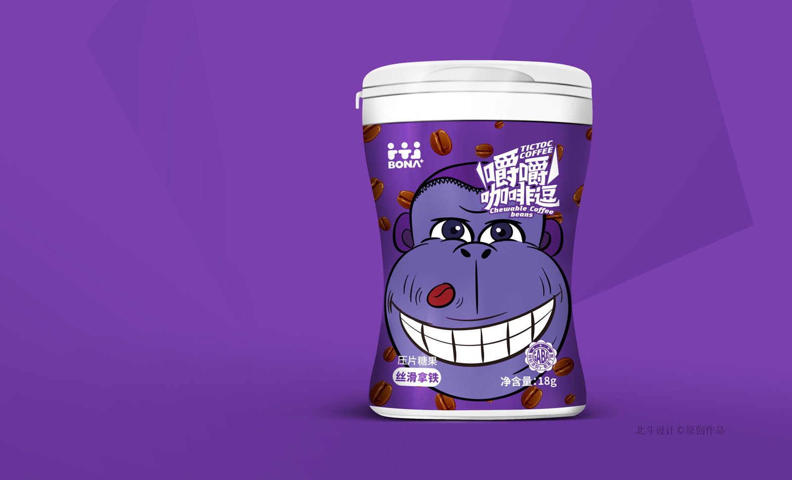 慶祝嚼嚼咖啡逗壓片糖果新品上線!此次新品包裝設(shè)計由北斗設(shè)計策劃設(shè)計,主要創(chuàng)意策略采用的是ip文化符號來作為產(chǎn)品的記憶特點,通過活潑可愛,愛搞怪的卡通ip賦予產(chǎn)品視覺有趣的體驗,色彩上運用了純厚的色彩來表現(xiàn)咖啡的那種醇厚的味道。