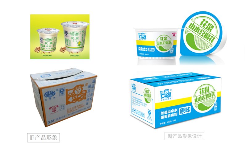 花泉的產(chǎn)品線不算很豐富,目前主力產(chǎn)品是豆腐花,嫩豆腐,老豆腐,腐竹等系列產(chǎn)品。北斗設(shè)計(jì)前期的第一個(gè)系列產(chǎn)品升級(jí)就是核心產(chǎn)品豆腐花系列,共三款產(chǎn)品:原味,紅豆香,黑豆香。
