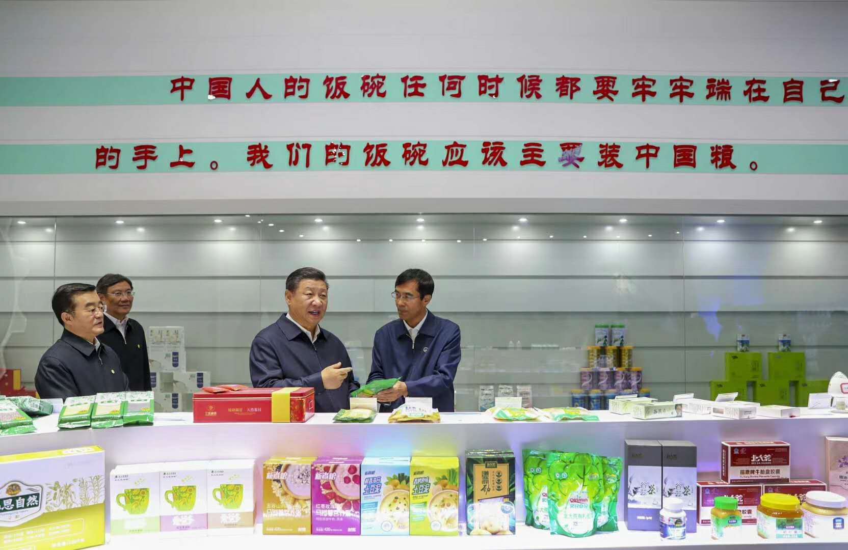 習(xí)近平主席欣賞的是北斗品牌設(shè)計(jì)為北大荒集團(tuán)五谷雜糧塑造的兩大主題包裝設(shè)計(jì)作品:《五谷禮贊》與《感恩自然》