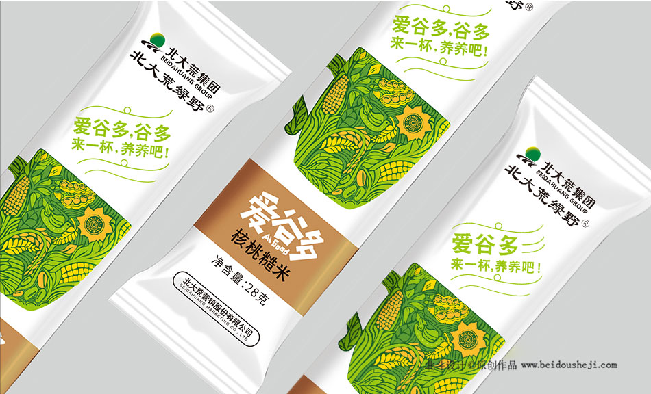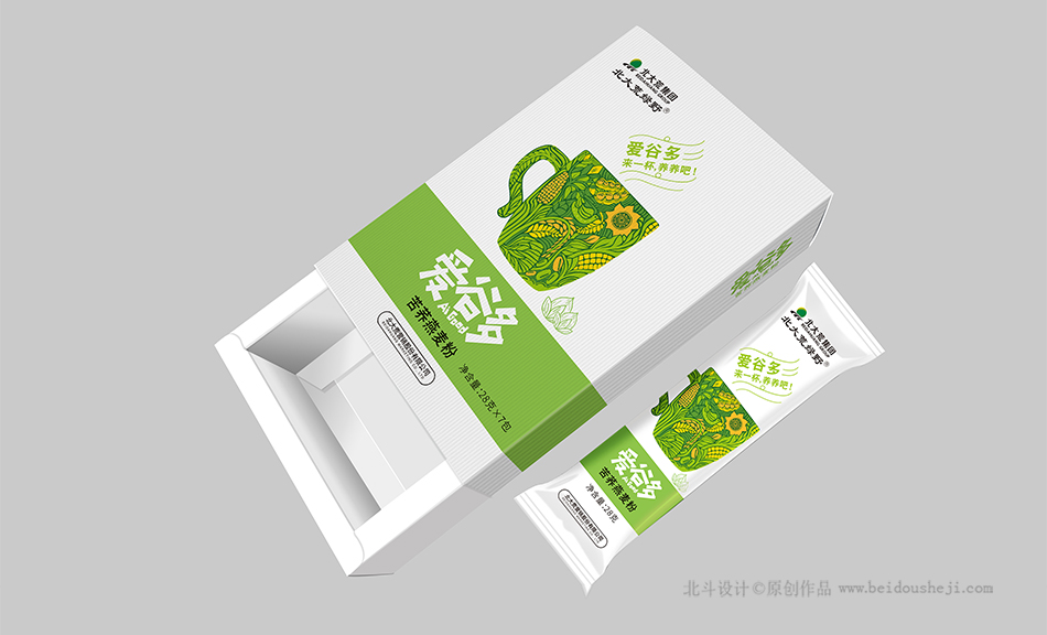 包裝作為產(chǎn)品的一個(gè)靈魂載體,它承載著產(chǎn)品與品牌的諸多語(yǔ)言,比如品牌的文化,產(chǎn)品的屬性,產(chǎn)品的文化,再到產(chǎn)品的功能屬性等等。從品牌的視覺上北斗品牌設(shè)計(jì)運(yùn)用了插畫的表現(xiàn)風(fēng)格來表現(xiàn)五谷禮贊,感恩自然的主題。然后再通過創(chuàng)新的版面設(shè)計(jì),讓整體的包裝設(shè)計(jì)達(dá)成和諧統(tǒng)一。