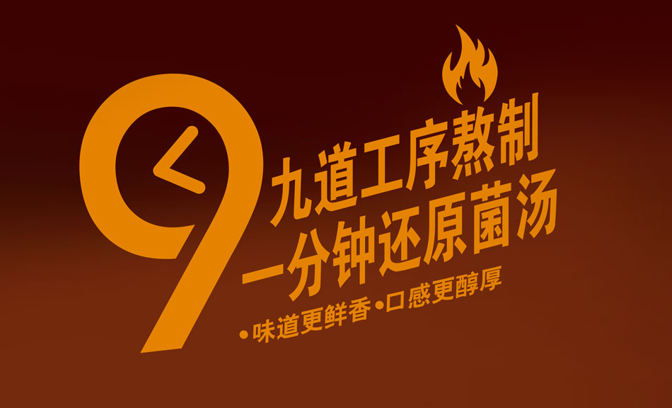 廣告語定位:九道工序熬制·一分鐘還原菌湯。