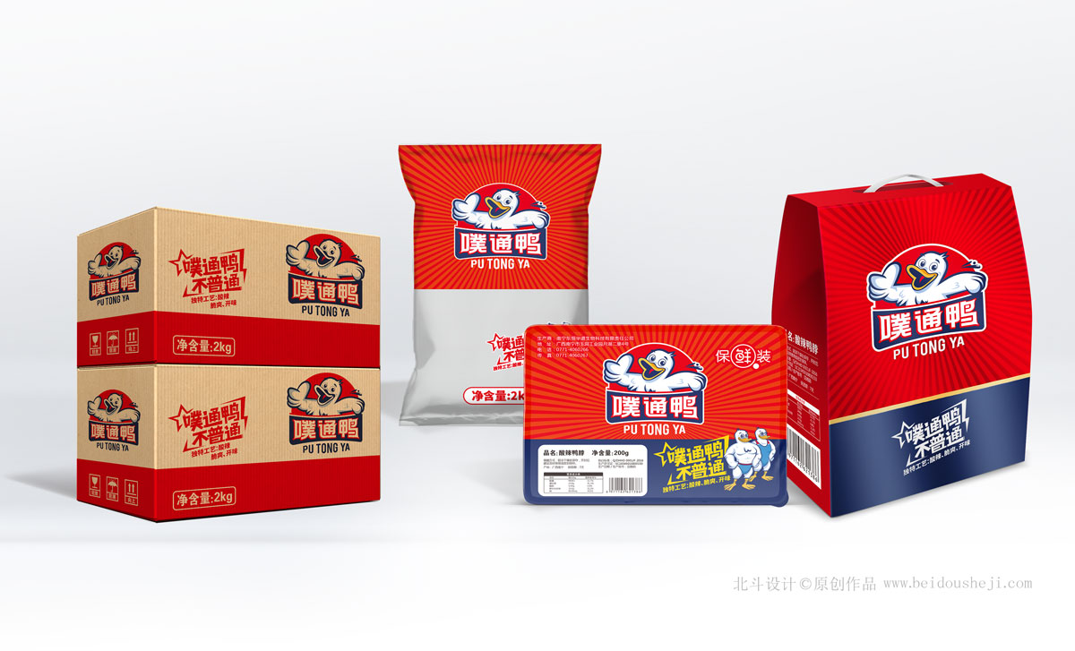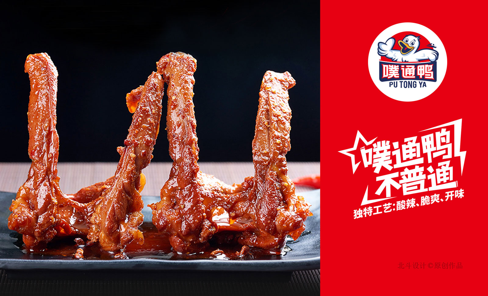 與噗通鴨陳總接觸,我只是把自己真實操作的經(jīng)驗與之分享,沒放太大的想法她能花費一筆費用來與北斗設計合作,而且我還建議她去找找一些價格相對優(yōu)惠的公司來直接執(zhí)行設計這塊就可以,沒想到她堅定的把項目交給我們的手上。這讓我們突然有了極大的壓力與挑戰(zhàn)。畢竟鹵制品的食材競爭非常激烈,市場上已形成了階梯式的認知布局,要想在沒有大投入的情況下建立自己的品牌認知,是有很大的挑戰(zhàn)。還好我們找到了有信心做好的是噗通鴨的支撐:1.噗通鴨有絕對優(yōu)勢的b端餐飲客戶,2.其獨特的生產(chǎn)工藝,讓其產(chǎn)品口感非常美味。在食品品牌領(lǐng)域,口感是消費再次購買的核心,而且是品牌口碑建立的關(guān)鍵所在。