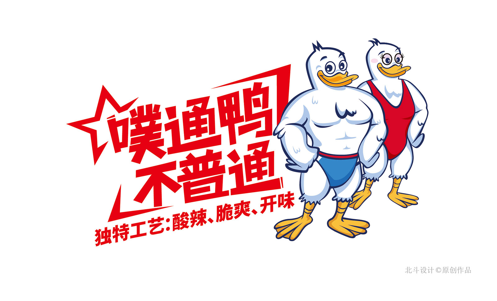 北斗設計方法從品牌的戰(zhàn)略定位,廣告語傳播定位,品牌文化ip及個性化產(chǎn)品包裝設計“四個”維度解決噗通鴨品牌的與眾不同