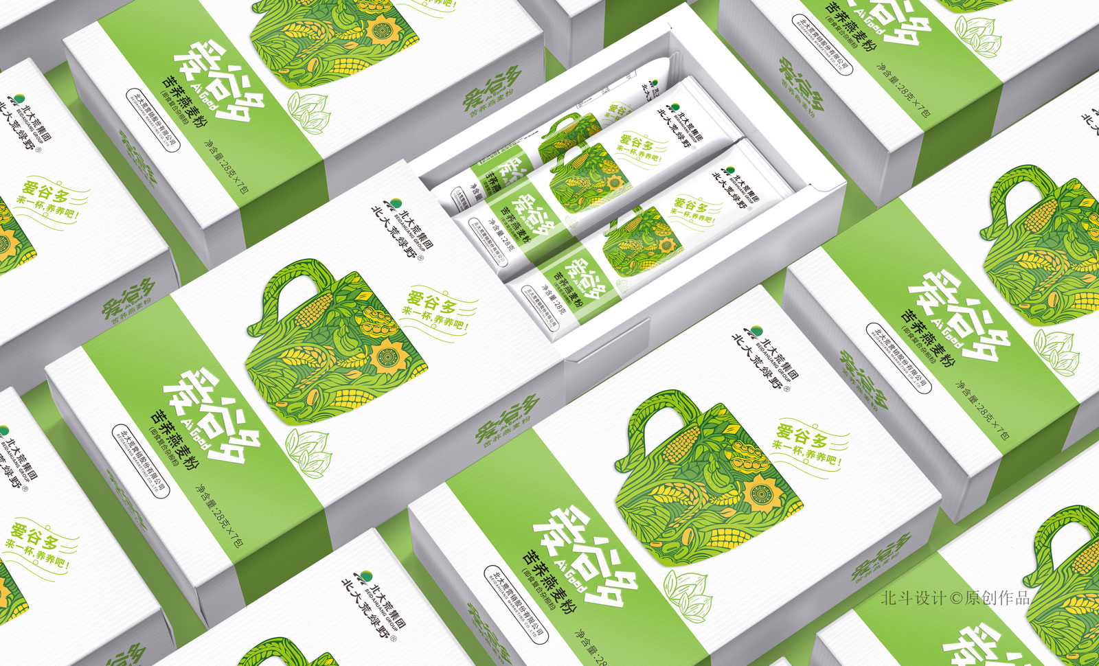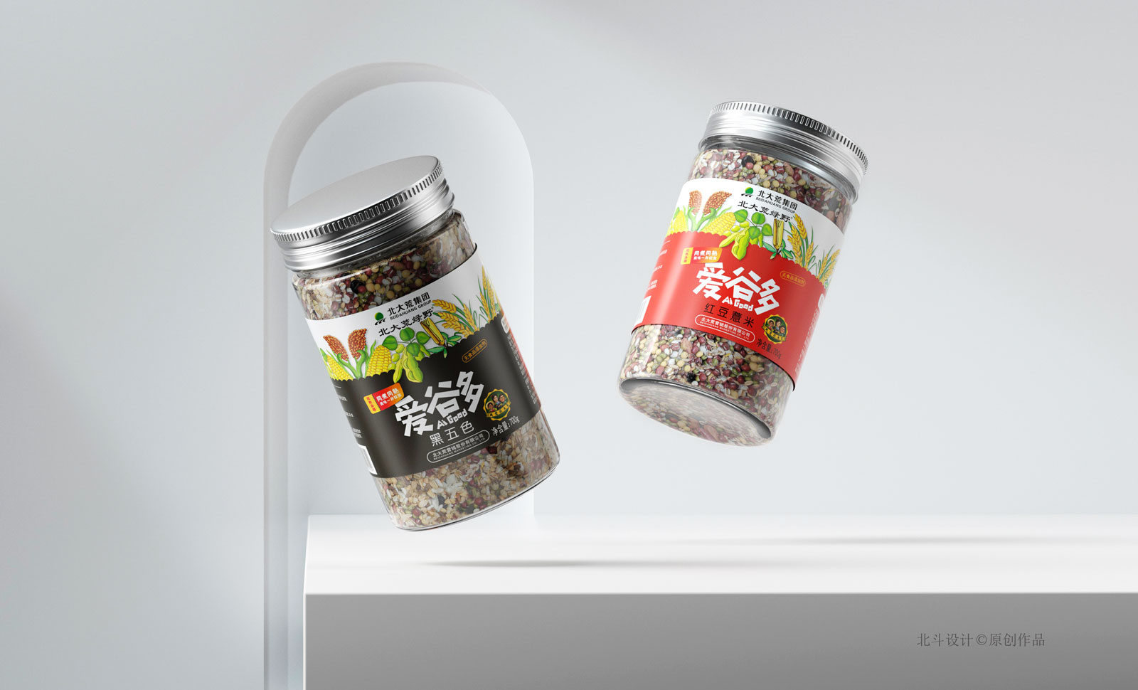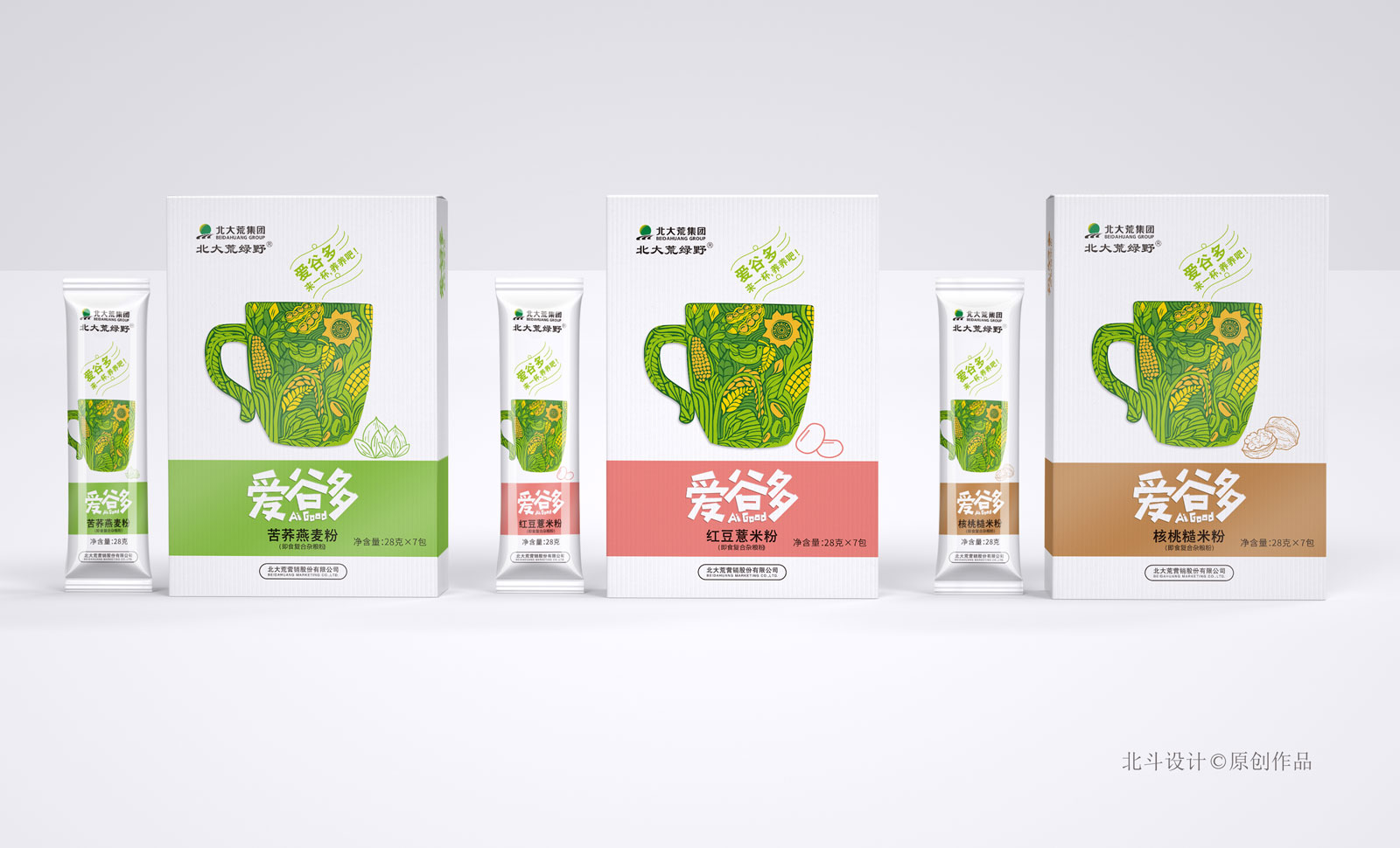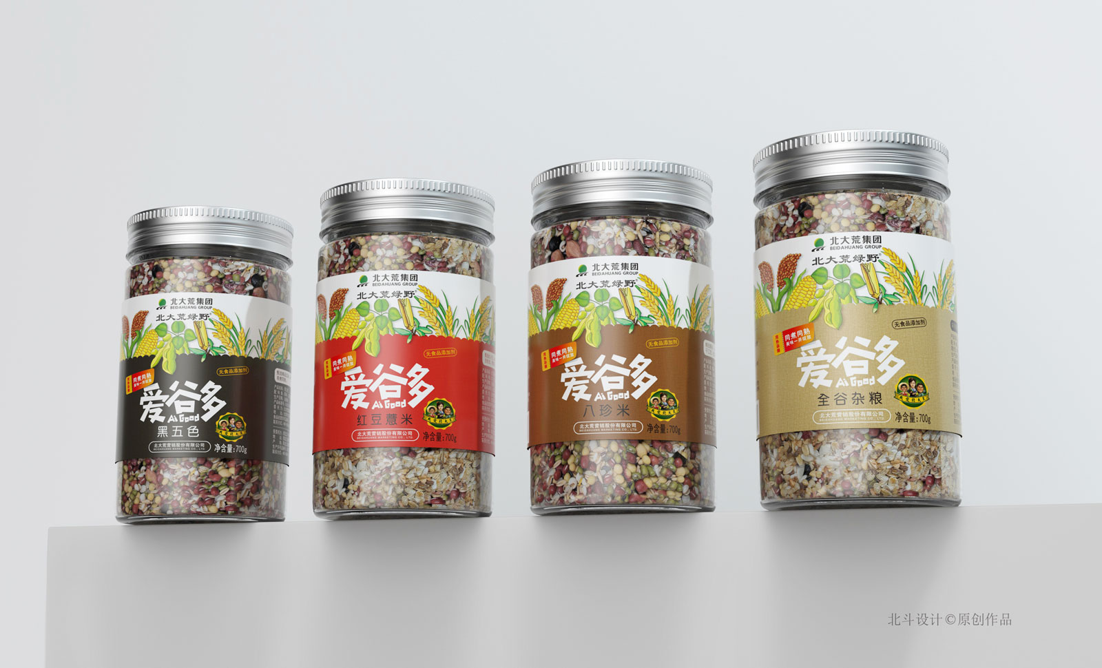 很高興北斗設(shè)計(jì)再次攜手北大荒達(dá)成對(duì)“愛谷多品牌包裝創(chuàng)意合作。合作內(nèi)容包含:愛谷多品牌logo設(shè)計(jì)和旗下代餐系列的雜糧粉及同熟雜糧系列包裝設(shè)計(jì)。此次合作,客戶的需求很明確:要借用北大荒的品牌背書快速推出這個(gè)系列新品,順便帶動(dòng)子品牌“愛谷多,渠道都是現(xiàn)有渠道經(jīng)銷商代銷,目的是為了搶占目前雜糧代餐粉的風(fēng)口市場。