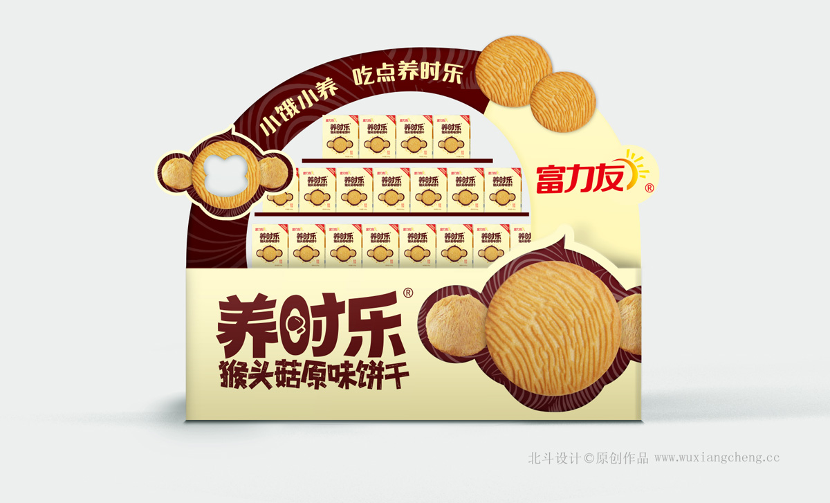 養(yǎng)時樂作為產(chǎn)品的記憶品類名,富力友欲借助養(yǎng)時樂來塑造自己在猴菇餅干休閑類的記憶名詞。