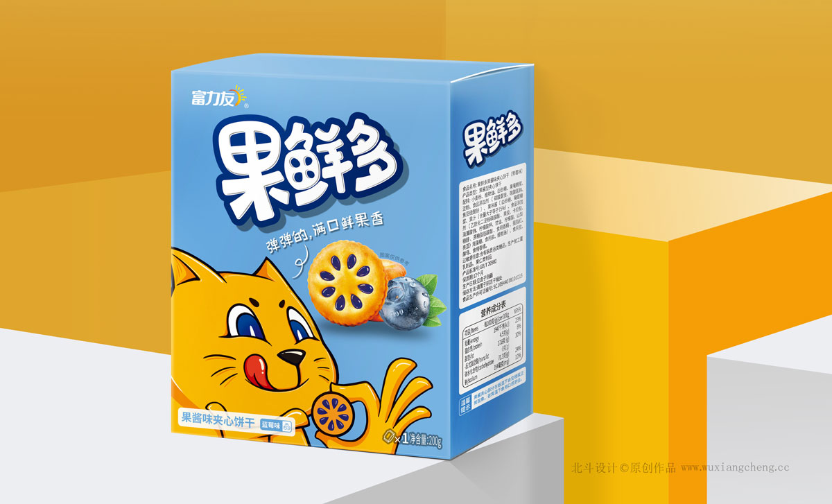 貓作為動物里比較挑食的種類,這是大家對于貓的共性認(rèn)知,所以我們想到了饞貓的ip文化,借助饞貓的概念能夠讓大家迅速記住富力友果鮮多的包裝設(shè)計形象,同時能體現(xiàn)果鮮多的美味。