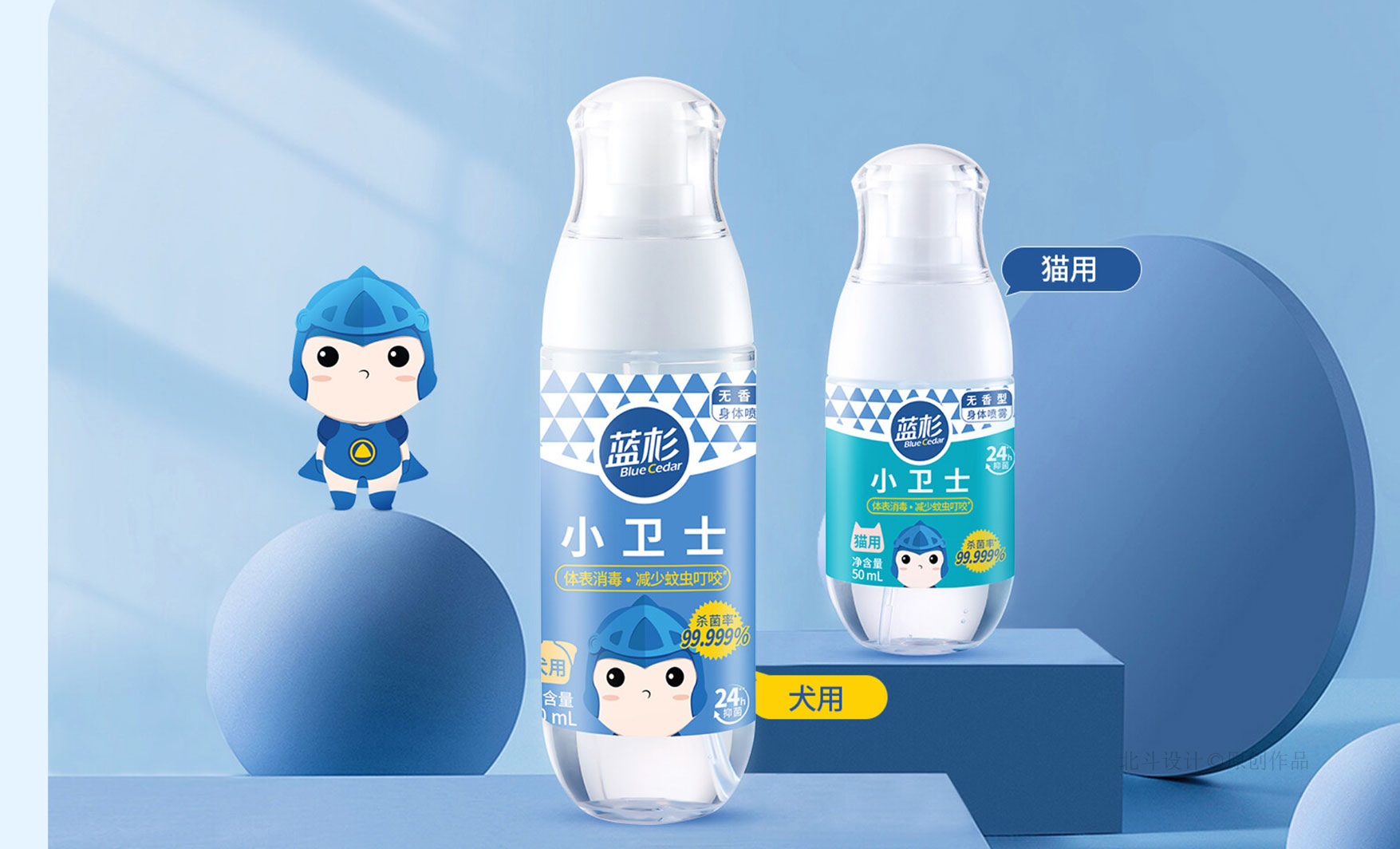 北斗設(shè)計(jì)于2021年接到啟威生物的委托,為其升級(jí)打造旗下“藍(lán)衫”寵物消殺日用品類品牌。