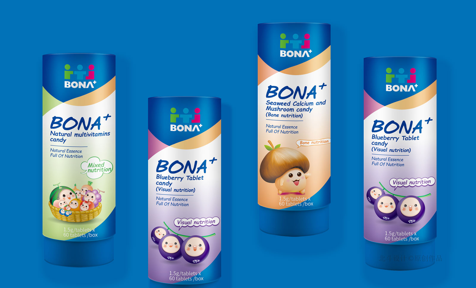 This series is bao le plus probiotics candy inside the highest price, all the raw material is more expensive, and it is original Australian import, packing design entirely in English, at the time of design also should pay attention to Australia's packaging design. The biggest difficulty for this series of packaging design is the selection of element and packaging forms of creativity, at first we want the box structure, but also feel too common, and the market common nutrition candy is the same as the above, and then we began to cross-industry to find some packing material. Finally, we implement the straight as the range of products packaging carrier, by unique appearance show their own personality, form their own packaging image memory.