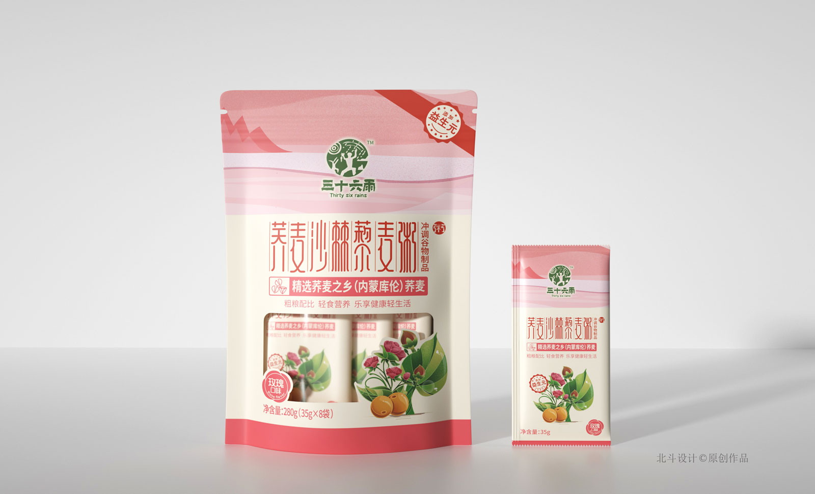 三十六雨蕎麥沙棘代餐粉包裝設(shè)計(jì)落地