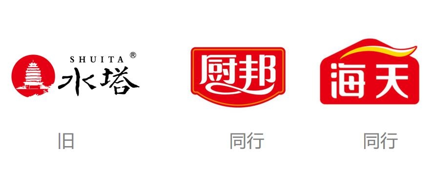 海天用了一個符號造型+文字;廚邦也是一個符號造型+品牌名字,水塔呢?