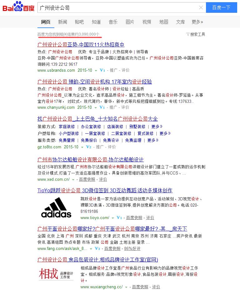 從上面的信息我們可以看出百度收錄的信息為309萬條信息。當(dāng)然這只是信息量。不代表有這么多家設(shè)計(jì)公司。