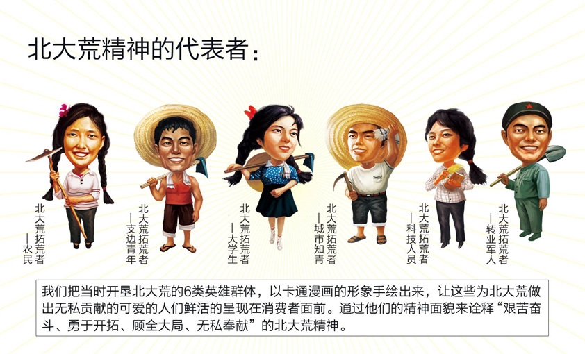 記得我們?cè)谒茉毂贝蠡拿娣巯盗衅放瓢b的時(shí)候,相成品牌設(shè)計(jì)在尋找北大荒文化的記憶點(diǎn),通過了兩個(gè)多星期的研究,分析,一次的推掉重來(lái),最后我們才確定了北大荒的開拓人群作為記憶點(diǎn)。把消費(fèi)者帶入到一種年代的歷史感。通過六種不同的人群共同展現(xiàn)出北大荒變成現(xiàn)在北大倉(cāng)的開拓精神。