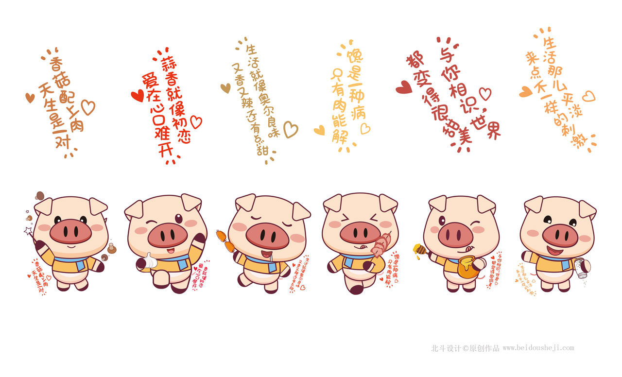 每一個成功形象設計背后是無數(shù)個被擊斃的形象設計,我們選擇一個卡通豬作為此系列的包裝戰(zhàn)略記憶符號,通過這個符號的演變豐富不同口味產(chǎn)品的包裝視覺體驗,同時規(guī)劃每一個產(chǎn)品對應不同口味的互動體驗語言,增加消費者與產(chǎn)品之間的互動感。