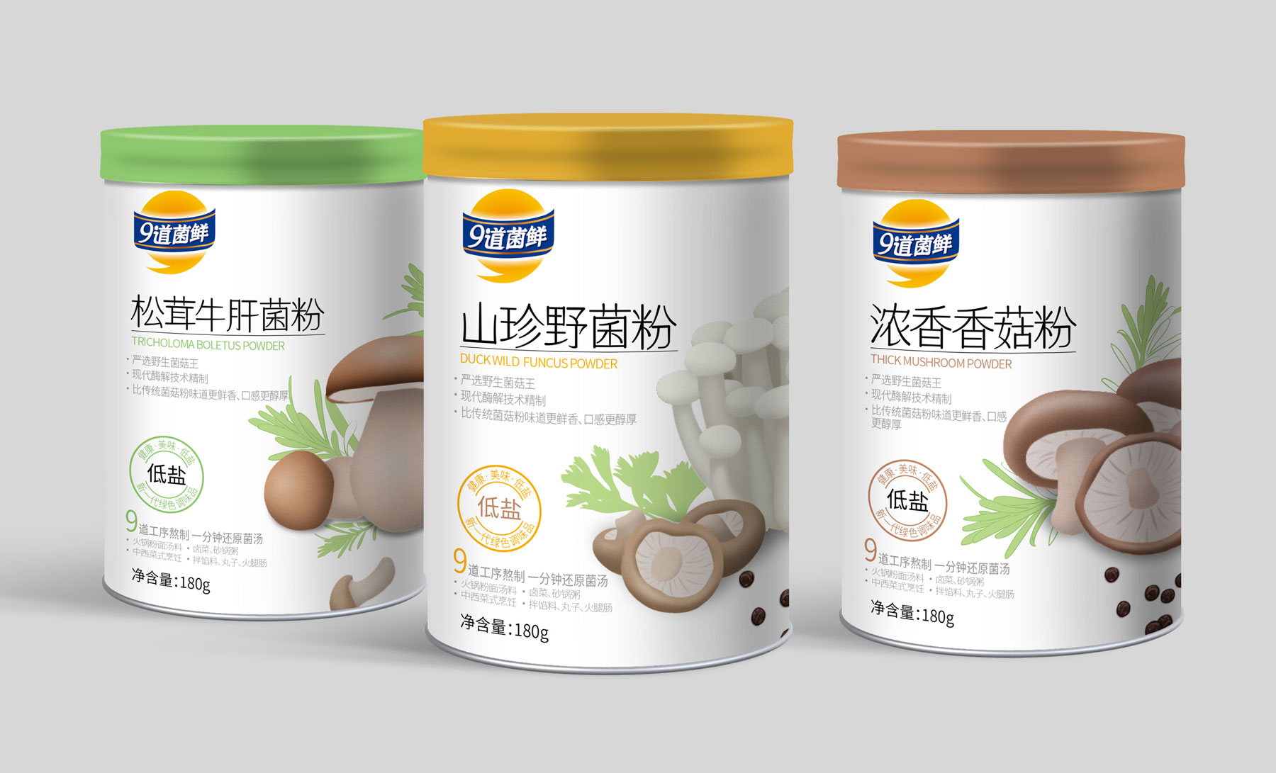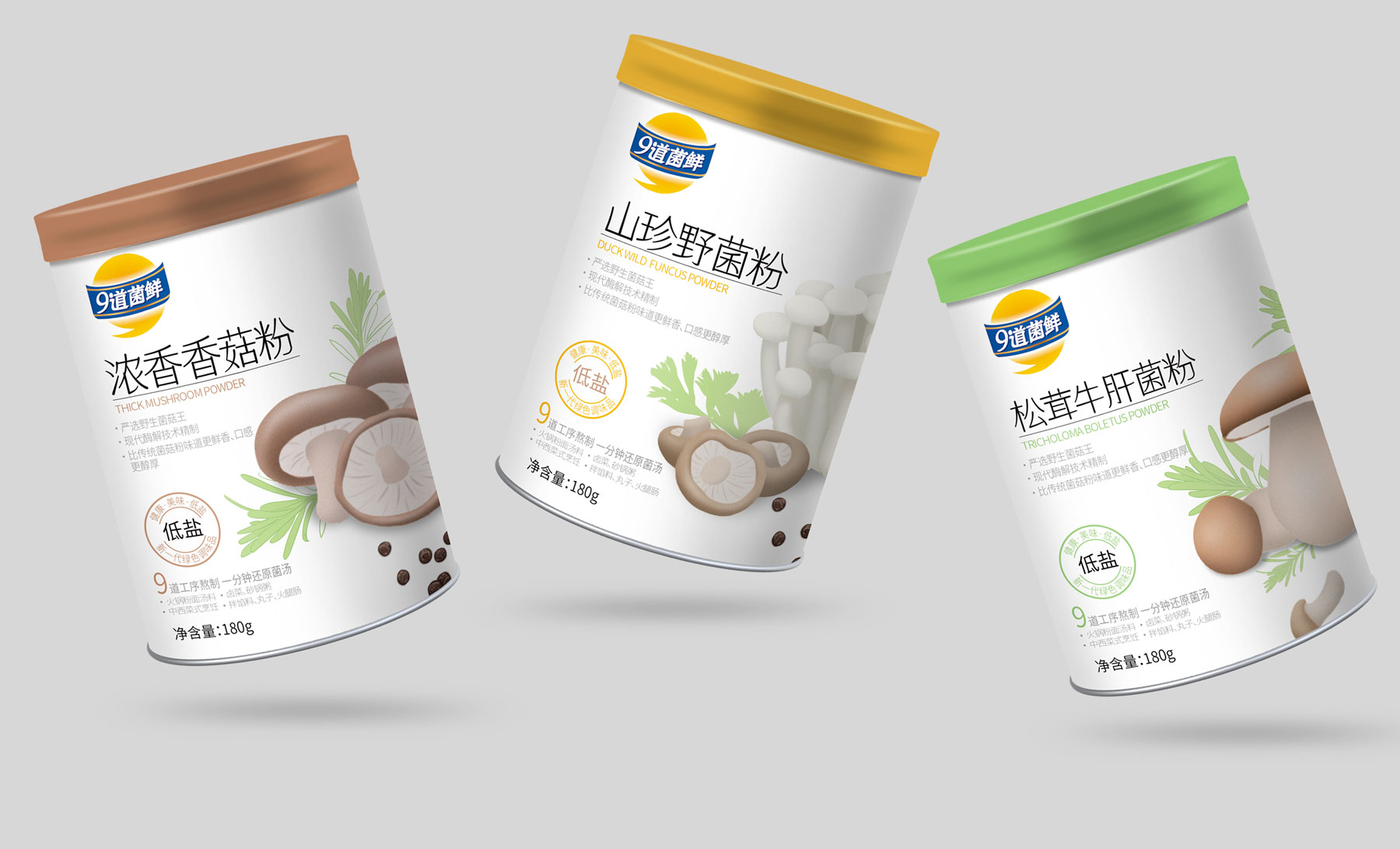 九道菌鮮低鹽菌粉系列設(shè)計(jì)