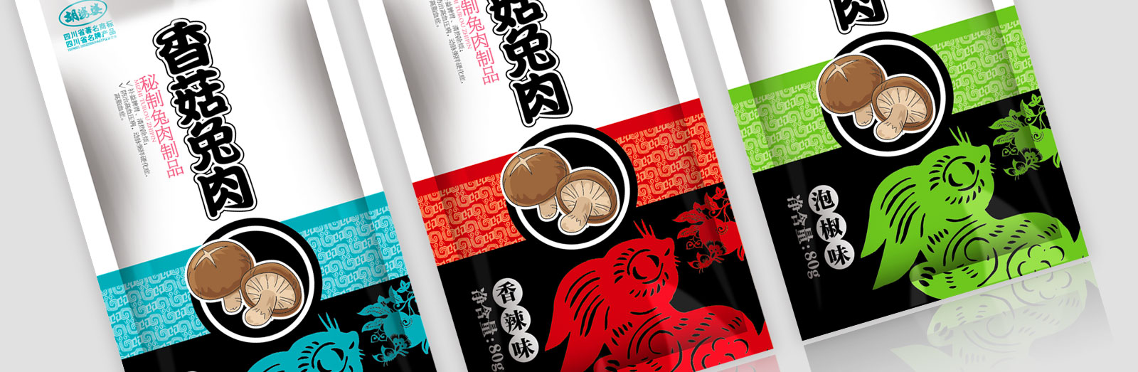 Hu mother-in-law mushroom rabbit series is divided into three: cow juice taste and fragrant spicy, pickled flavor. In order to be able to handle the mother-in-law hu family brand recognition system, we will keep the hu mother-in-law particular background brand symbol.