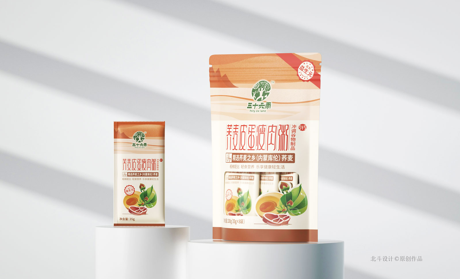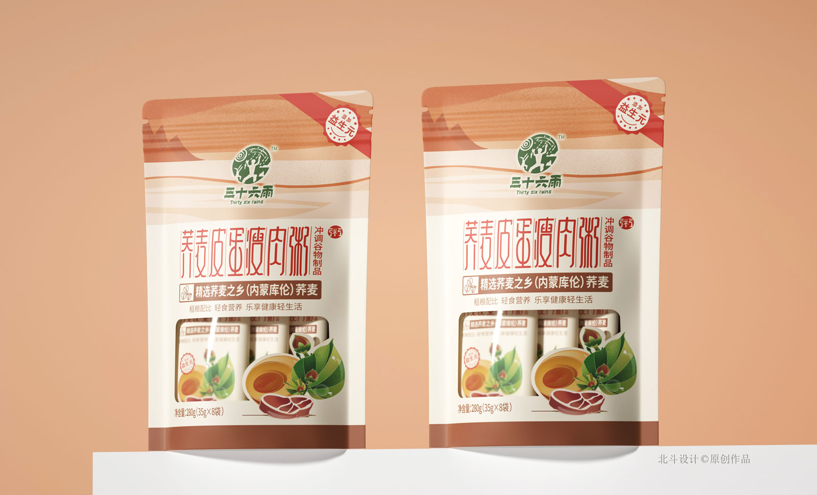 北斗設(shè)計(jì)致力于將創(chuàng)意演變成品牌戰(zhàn)略資產(chǎn),為客戶產(chǎn)品塑造更具市場(chǎng)競(jìng)爭(zhēng)力的戰(zhàn)略包裝設(shè)計(jì),讓客戶所花的每一份設(shè)計(jì)費(fèi)能夠形成品牌資產(chǎn)的增值或保值積累。此次幫助三十六雨延展了蕎麥皮蛋瘦肉粥,主打沖調(diào)型代餐飲品類別。三十六雨的產(chǎn)品戰(zhàn)略是圍繞蕎麥為主體開發(fā)關(guān)聯(lián)性快銷食品,致力為客戶解決簡(jiǎn)單代餐的營(yíng)養(yǎng)問題。
