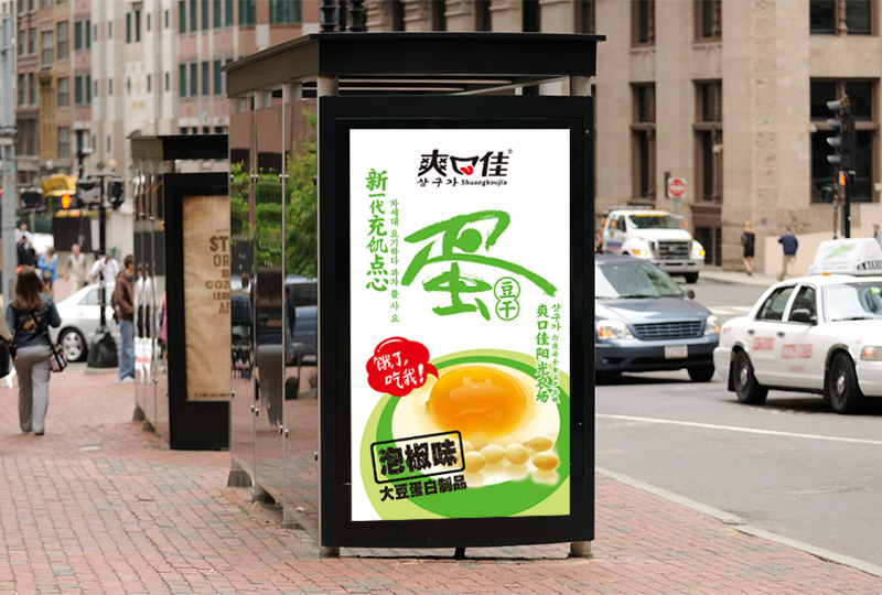 戶外廣告我們采用了連環(huán)畫面展示的手法來展現(xiàn)不同產(chǎn)品口味。選址主要在各大超市商場門口,通過放大真實的產(chǎn)品圖像來刺激消費者的視覺,讓其產(chǎn)生購買欲望的同時能夠記住爽口佳的品牌。