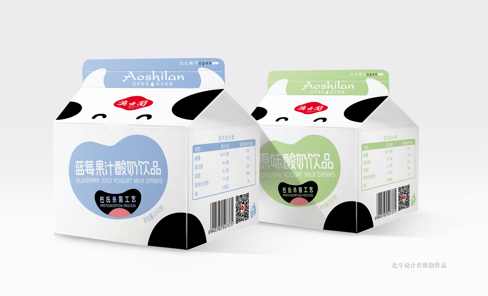 針對澳士蘭卡通版包裝設計項目,北斗設計策略:運用奶牛作為產(chǎn)品元素表現(xiàn),讓消費者直觀感受到到產(chǎn)品的屬性。顏色運用在整個澳士蘭包裝設計體系里取用,主題是:清新,簡潔,體現(xiàn)出“鮮”的概念。客戶反饋:澳士蘭楊總見到這次的包裝系統(tǒng)升級升級給出了高度的肯定,對于這個系列的屋頂盒設計方案非常興奮的說:太可愛了,我太喜歡了。 我想這就是我們要表達,我們期望我們的作品能夠傳遞給我們的用戶一種愉悅的心情,我們在享受的過程,能感覺到它給我們帶來趣味與健康,讓我們優(yōu)雅的體驗一個有創(chuàng)意的作品。