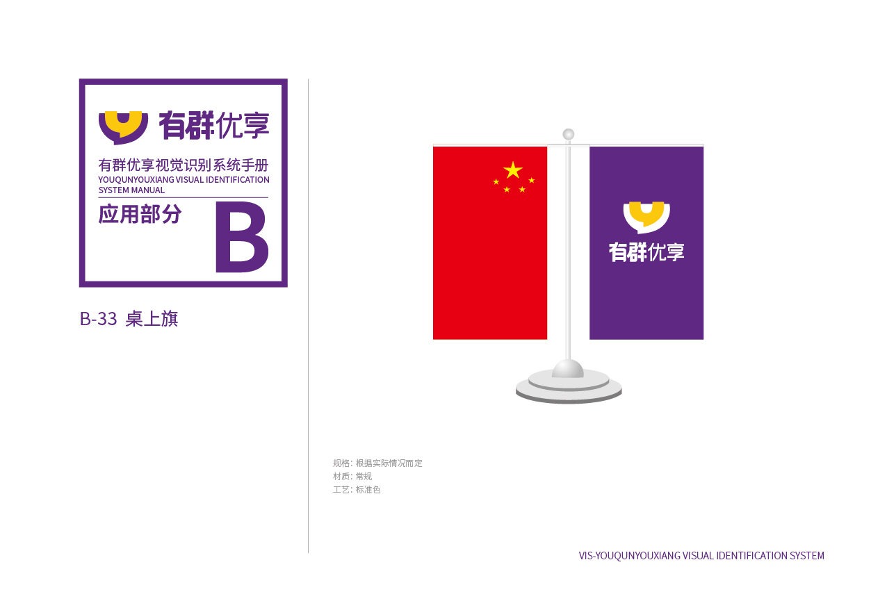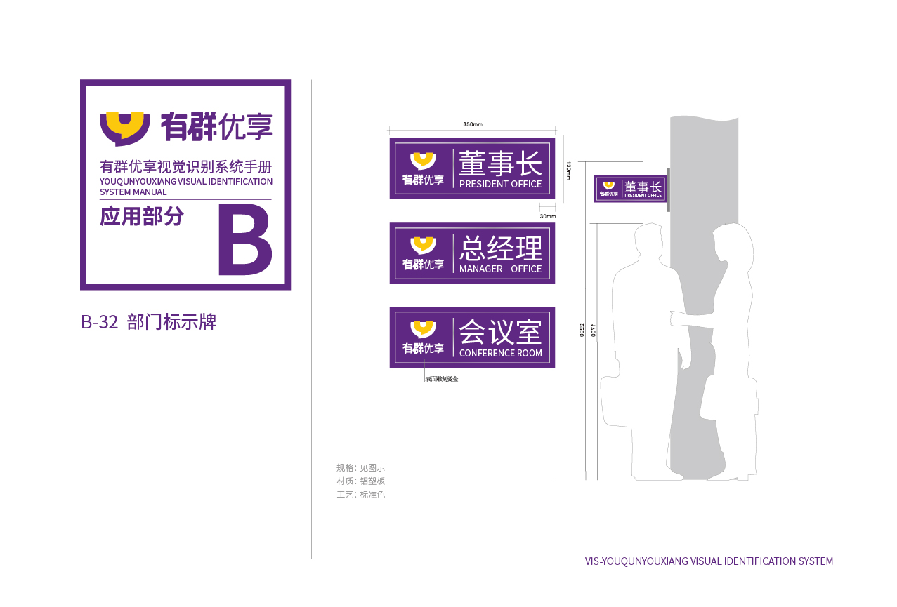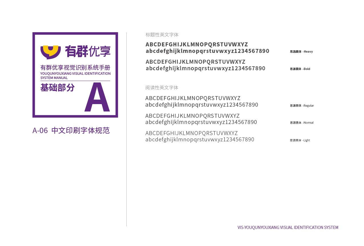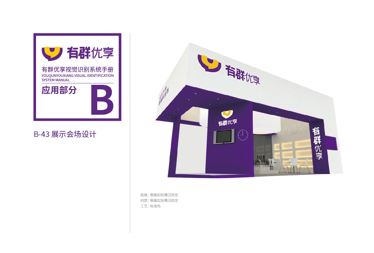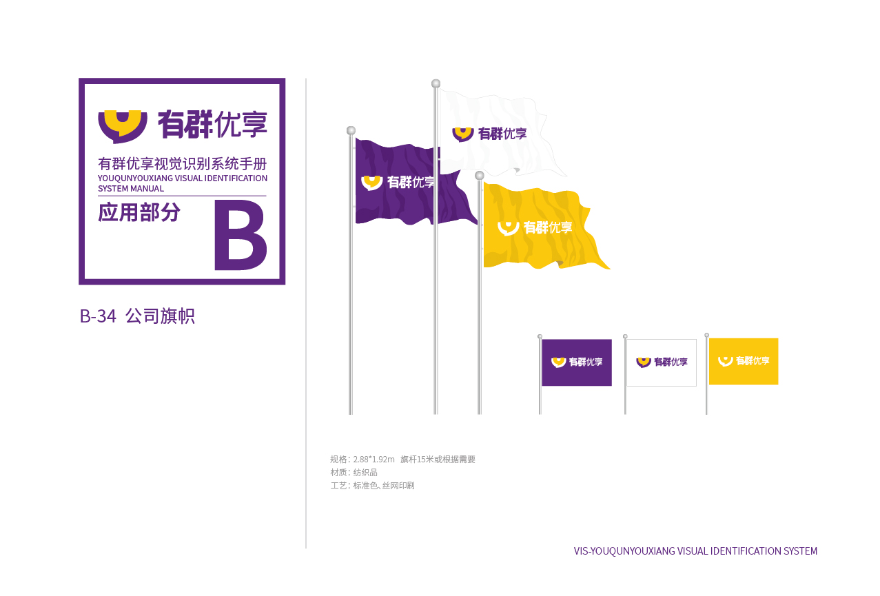 有群優(yōu)享是針對城市居民與農(nóng)民流通農(nóng)產(chǎn)品所建立傳播的品牌名稱。廣告語:讓城市居民與農(nóng)民共享美好生活。而有群創(chuàng)客及有群扶貧是針對企業(yè)內(nèi)部的傳播以及響應(yīng)政府的扶持政策。所以整個品牌的系統(tǒng)聚焦是有群優(yōu)享的視覺傳播。