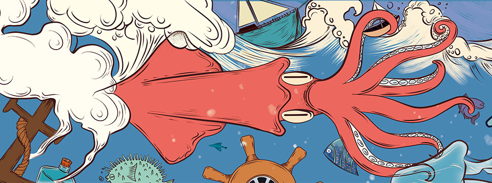 視覺插畫圍繞魷魚展開一些列的創(chuàng)作,色彩定位也與市場(chǎng)有極大的差異化,希望通過(guò)消費(fèi)者的第一視覺能夠快速記住我們快捷體驗(yàn)餐廳的形象。
