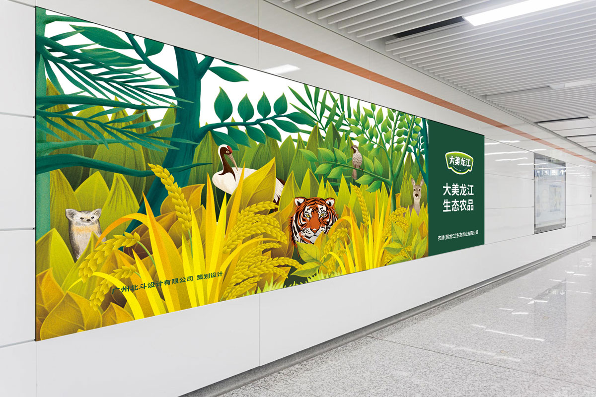 北斗設(shè)計(jì)通過原創(chuàng)手繪表現(xiàn)出大美龍江,生態(tài)農(nóng)品的概念,畫面里的動(dòng)物,稻谷,鶴,虎,都是黑龍江地區(qū)的野生保護(hù)動(dòng)物,通過動(dòng)物與大自然的和諧氣息來體現(xiàn)出大美龍江品牌的生態(tài)文化。