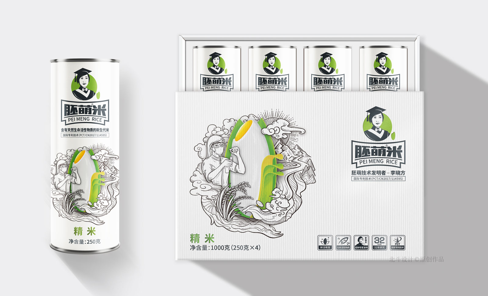 對于北斗設(shè)計來說,每個項目都不可復(fù)制,如何能做出客戶滿意,消費(fèi)者看著興奮的包裝設(shè)計,這是我們始終的追求。此次面對胚萌米的項目委托,北斗策劃設(shè)計憑借多年的積累,為客戶迅速制定了設(shè)計的方向,為了能夠讓品牌設(shè)計更有價值,我們通過插畫的表現(xiàn)形式來體現(xiàn)產(chǎn)品及品牌的價值文化。這是一款通過專利技術(shù)而產(chǎn)生更大營養(yǎng)價值的大米。后續(xù)我們在產(chǎn)品策劃上著重解析。