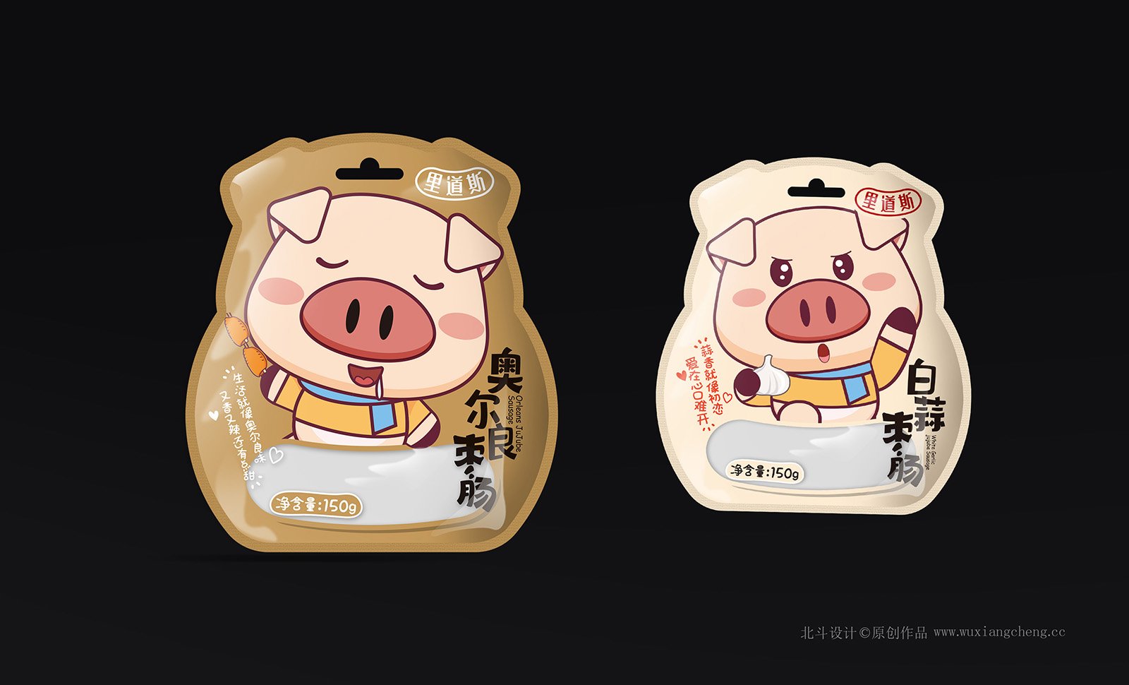 策劃ip的前期,我們需要研究品牌的文化,產(chǎn)品屬性,去思考我們要用一個(gè)什么樣的IP去表現(xiàn)出我們?cè)O(shè)想的畫(huà)面??紤]到這是一個(gè)肉質(zhì)類(lèi)產(chǎn)品,核心原材料就是豬肉,同時(shí)它的消費(fèi)群體是兒童,及兒童媽媽?zhuān)晕覀儑@消費(fèi)群體去給他制定的性格是:可愛(ài),活潑,喜感。通過(guò)上百過(guò)個(gè)草稿,一次次嘗試,我們?nèi)缭敢詢(xún)斣O(shè)計(jì)出符合我們所設(shè)想的ip符號(hào)。