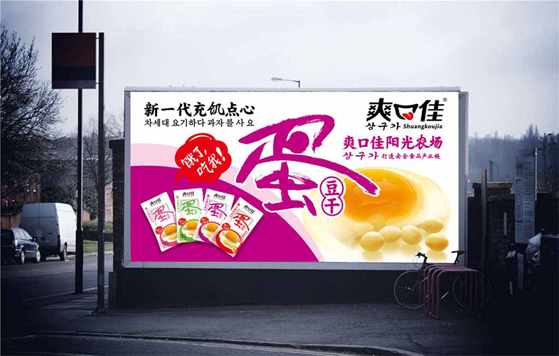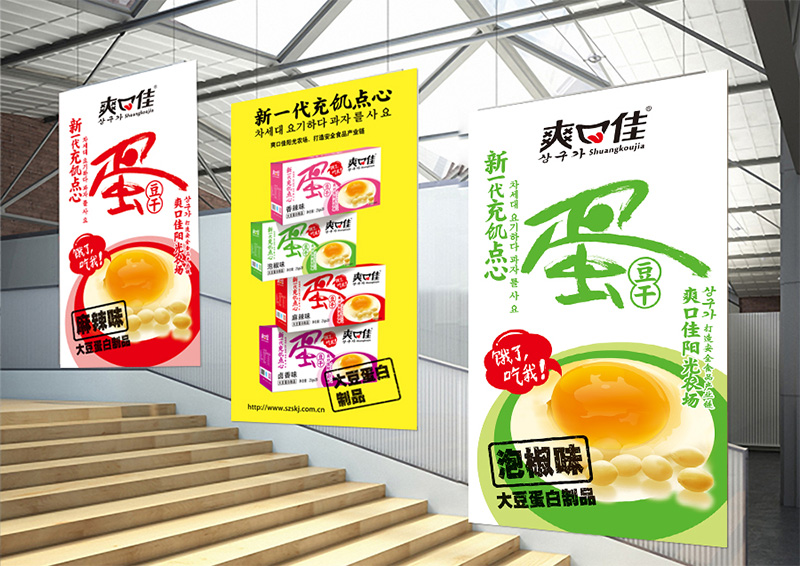爽口佳升級(jí)的新產(chǎn)品——雞蛋干,對(duì)于這次的海報(bào)設(shè)計(jì),主要是針對(duì)于新產(chǎn)品的視覺(jué)形象做宣傳,為了能夠增加產(chǎn)品視覺(jué)效應(yīng),我們把產(chǎn)品包裝設(shè)計(jì)上的元素拿出來(lái)整合到海報(bào)設(shè)計(jì)上,讓整體新產(chǎn)品的品牌視覺(jué)統(tǒng)一。
