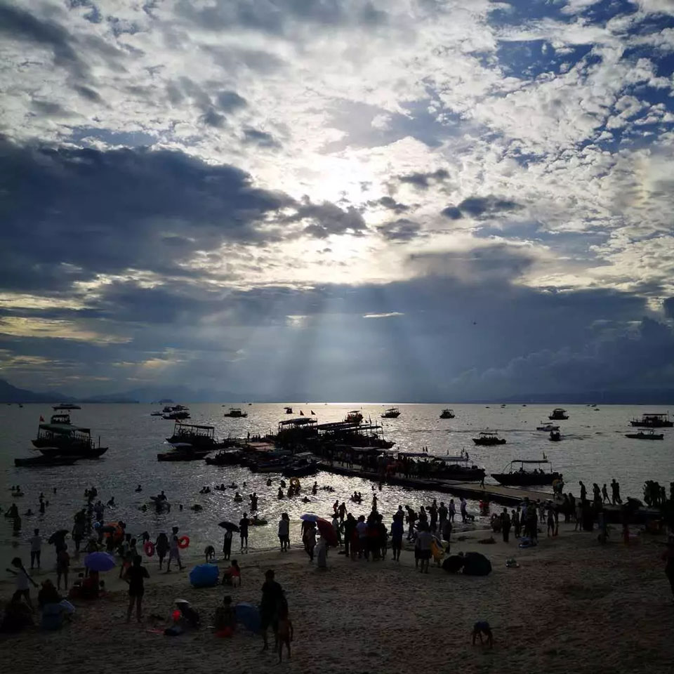 此時(shí)已是傍晚,陽光也變得溫柔起來,透過云層,灑向大海,美得不像話。