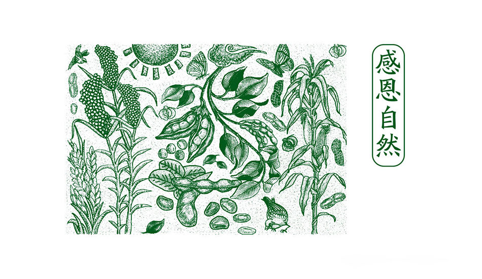 包裝作為產(chǎn)品的一個(gè)靈魂載體,它承載著產(chǎn)品與品牌的諸多語(yǔ)言,比如品牌的文化,產(chǎn)品的屬性,產(chǎn)品的文化,再到產(chǎn)品的功能屬性等等。從品牌的視覺上北斗品牌設(shè)計(jì)運(yùn)用了插畫的表現(xiàn)風(fēng)格來表現(xiàn)五谷禮贊,感恩自然的主題。然后再通過創(chuàng)新的版面設(shè)計(jì),讓整體的包裝設(shè)計(jì)達(dá)成和諧統(tǒng)一。