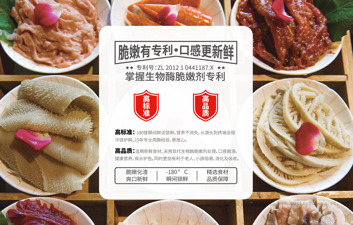 《酶好食材定義》:通過(guò)精選優(yōu)質(zhì)食材,采用專利生物蛋白酶脆嫩劑處理好的高品質(zhì),高標(biāo)準(zhǔn)凈品食材。