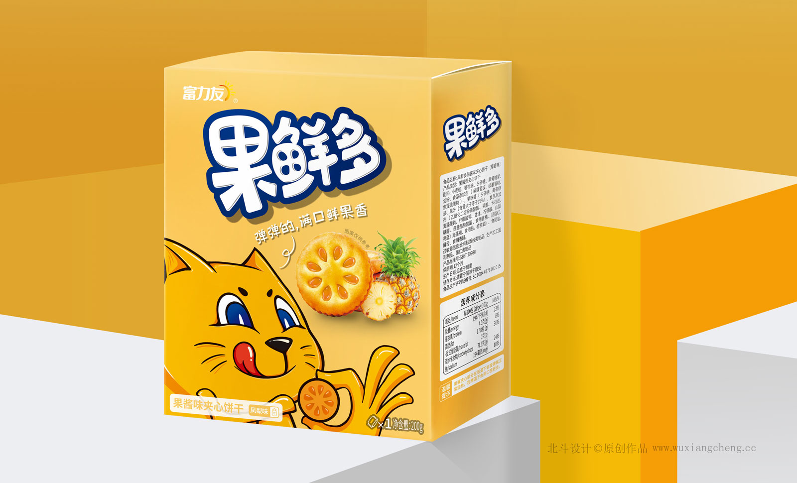 貓作為動物里比較挑食的種類,這是大家對于貓的共性認(rèn)知,所以我們想到了饞貓的ip文化,借助饞貓的概念能夠讓大家迅速記住富力友果鮮多的包裝設(shè)計形象,同時能體現(xiàn)果鮮多的美味。