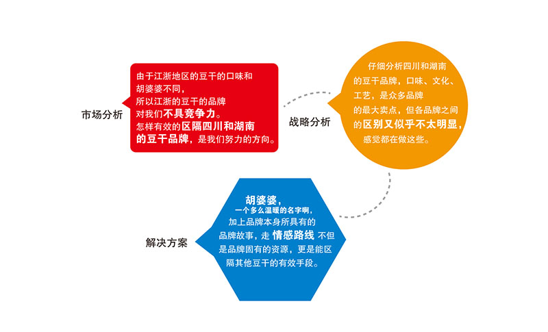 對(duì)于胡婆婆品牌的規(guī)劃,我們采用情感營(yíng)銷,走親情路線,為消費(fèi)者營(yíng)造一次心靈的回歸。產(chǎn)品不僅僅只是產(chǎn)品,而是消費(fèi)的一種情緒、一種體驗(yàn)、一種價(jià)值。在物質(zhì)繁雜的年代,我們內(nèi)心漠然的距離感,因一次觸碰回憶中最深刻的記憶而被打破,而被拉近。