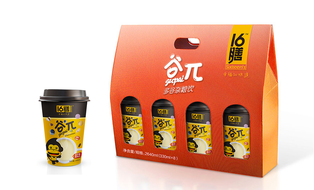 十六膳的多谷益膳系列通過(guò)前期的市場(chǎng)終端考察研究,分析,我們幫助其定制了“一正一負(fù)的獨(dú)特板式”作為其品牌記憶符號(hào)。同樣是紙盒和鋁箔袋,只要大家看到這種一正一負(fù)的包裝形式,就能無(wú)形想到這就是十六膳的多谷益膳系列包裝形象。