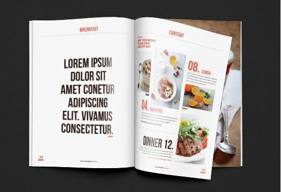 上面的食物是不是非常有食欲感,沒有好的元素,這本畫冊設(shè)計就沒有吸引力,現(xiàn)在的食品畫冊包裝設(shè)計,顧客更多看的是照片,而不是密密麻麻的文字,人的生活節(jié)奏快了,設(shè)計的的節(jié)奏也要更上,必須要清晰明了,不能藏著噎著。