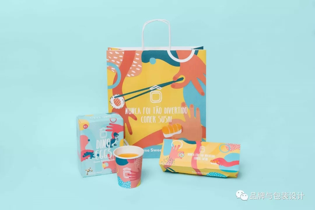 如何運用趣味性來設(shè)計產(chǎn)品包裝設(shè)計,卡通是趣味性最佳表現(xiàn)形式,但是為了能夠更好地體現(xiàn)出兒童的產(chǎn)品屬性,這家包裝設(shè)計公司用了扁平化的設(shè)計思維來包裝這款壽司食品,專門為兒童設(shè)計。“吃壽司從未如此有趣”是創(chuàng)造新菜單標識的座右銘。視覺語言旨在表達與壽司相關(guān)的自由,運動和樂趣。為了與這個兒童宇宙建立親密關(guān)系,溝通的視覺基礎(chǔ)就是插圖。手,壽司,筷子以及恐龍的組合,旨在傳遞沿著手臂創(chuàng)造的運動,并構(gòu)建一個動態(tài)和有趣的圖像,與兒童的自然行為一致。