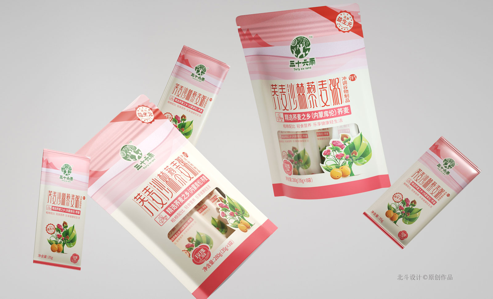 三十六雨蕎麥沙棘代餐粉包裝設(shè)計(jì)落地
