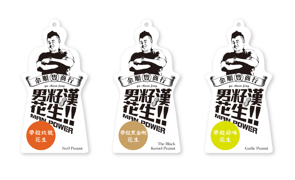 我們通過的男子漢花生的食品包裝設計來分析下,在男子漢包裝設計的過程中,他們根據品牌的核心載體“男子漢”去做一個演繹,運用手繪黑白的效果去表現男子漢的形象,在字體的設計上面運用了粗款有力的字體設計,體現了男子漢的粗狂······