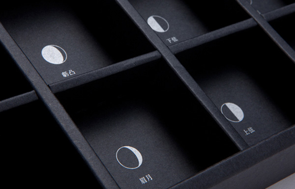 同時(shí)這盒月餅包裝設(shè)計(jì)里涵蓋了人文的東方傳統(tǒng)和當(dāng)代美學(xué)生動(dòng)的色彩。設(shè)計(jì)師通過(guò)一個(gè)月內(nèi)月亮的形狀變化來(lái)作為月餅的包裝紙。同時(shí)就算拿走了,在底部也的包裝盒上也同樣印有月亮形狀,真的是很細(xì)心。