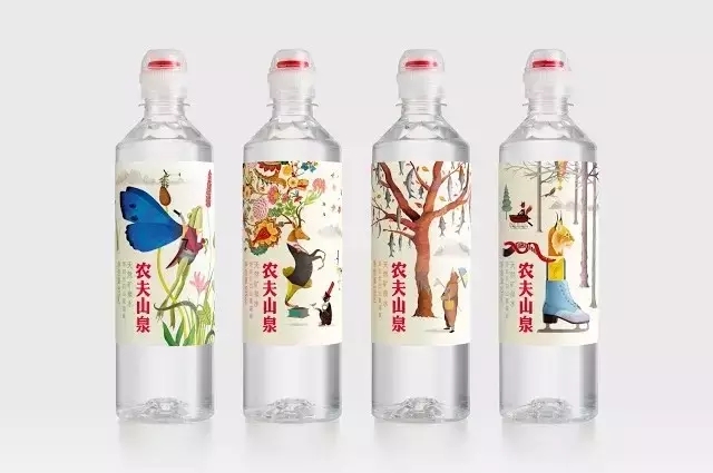 再看看第二款產(chǎn)品——茶派,這款品牌包裝設(shè)計(jì)的風(fēng)格所走的路線就逼格一些了,他們采用的設(shè)計(jì)風(fēng)格是細(xì)膩的插畫風(fēng)格。和小明同學(xué)的那種大色塊形成了鮮明的對(duì)比。不過(guò)這一貫是農(nóng)夫山泉的風(fēng)格。比如他出的那款高端水包裝設(shè)計(jì),同樣也是那種風(fēng)格設(shè)計(jì)