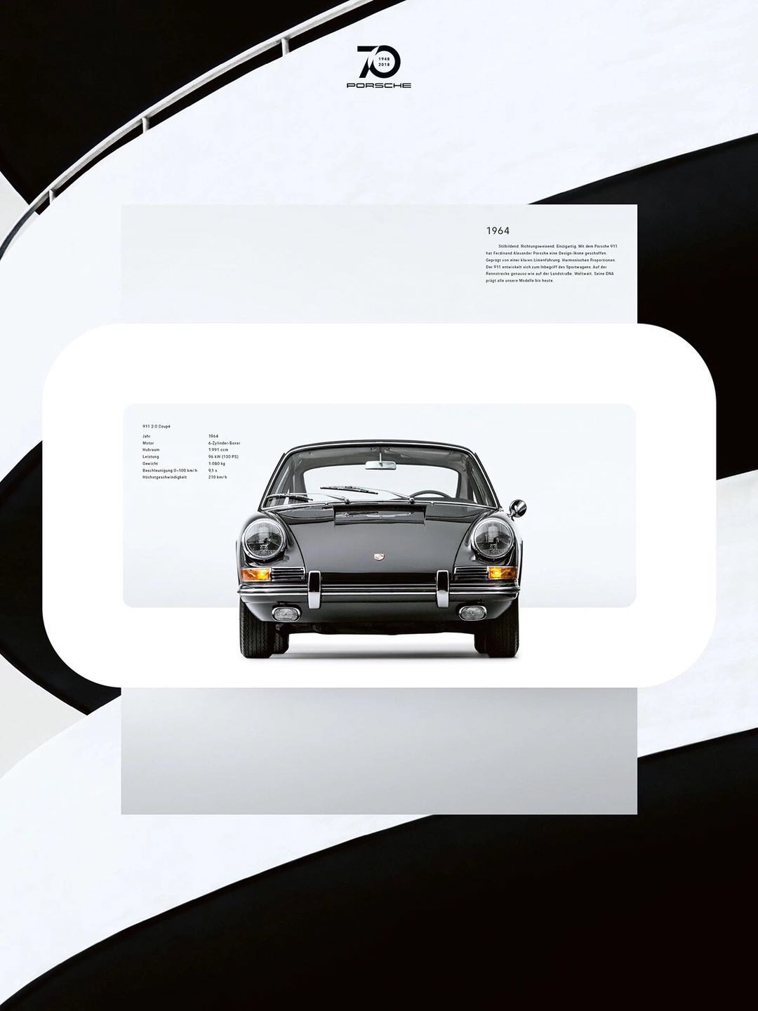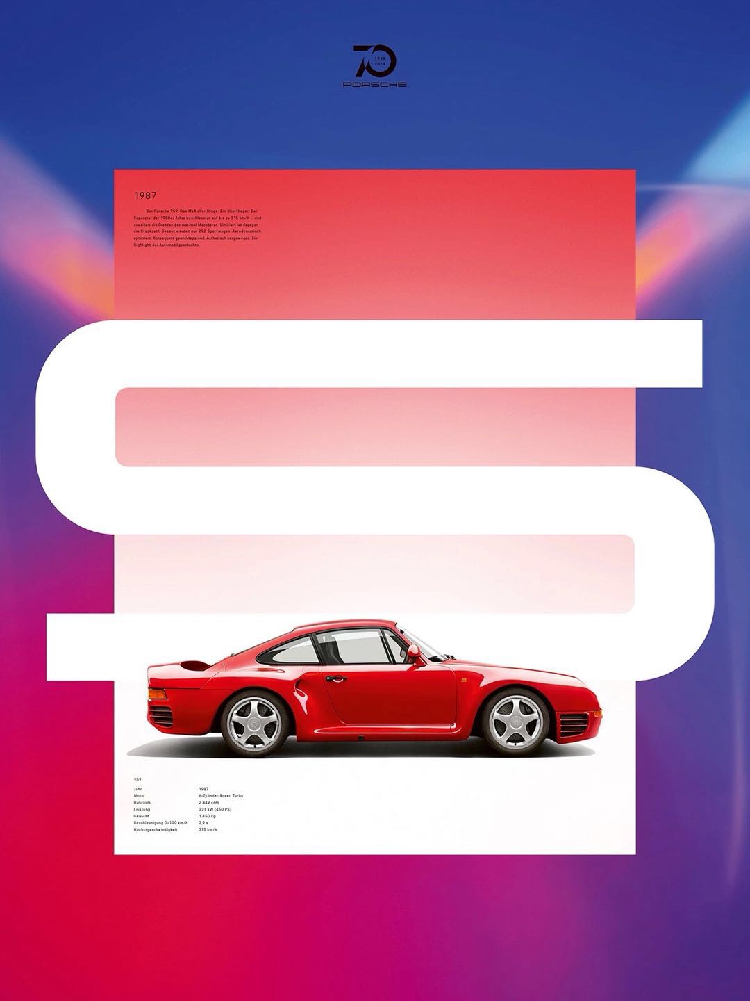 色彩呼應(yīng)的最終目的就是解決畫面的協(xié)調(diào)統(tǒng)一,看下保時(shí)捷的70周年的海報(bào)品牌包裝設(shè)計(jì)。