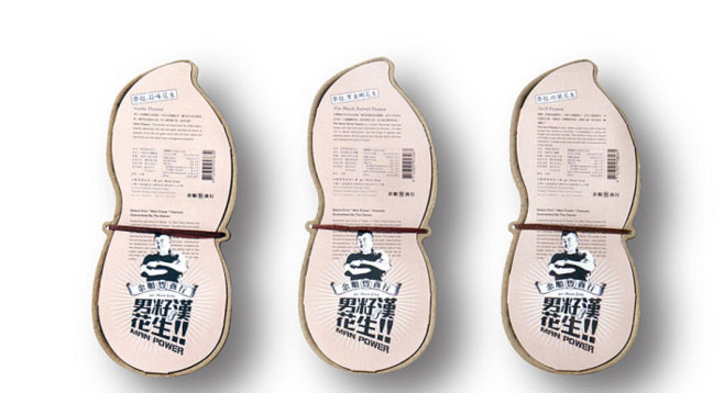 男子漢花生的這個包裝形式直接采用花生的形狀作為包裝外形。這樣能夠更加有利于識別產(chǎn)品的屬性。